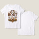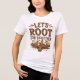 Celebrate kindness and community with this rustic t-shirt design featuring the text "LET'S ROOT FOR EACH OTHER" in a charming hand-drawn font. Illustrated carrots, onions, and potatoes add a playful touch, set against a beige wooden board background. Perfect for spreading positivity and wholesome vibes in everyday style!