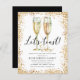 This is a budget friendly elegant and stylish New Years Eve Party invitation on a flat sheet. The design features a pair of watercolor champagne glasses, a gold glittery border and a call to your invited guests to celebrate the dawn of the new year with “Let’s toast!” in a modern script font.