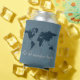 Let the adventure begin text design with world map decoration on grunge, blue background