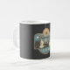 Retro style "Let the adventure begin" text design with mountain view, sun, pine trees and birds decoration on grunge background