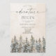 This is a Let The Adventure Begin Winter Snowy Mountain Pine Tree Landscape Bridal Shower Invitation!