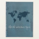 Let the adventure begin text design with world map decoration on grunge, blue background
