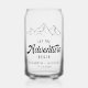 Give a wedding toast and a fun souvenir keepsake gift to yourselves and your wedding guests, groomsmen and bridal party with this unique personalised beer can glass featuring a sketch of mountains, "Let The Adventure Begin" written in a mix of simple typography and a retro script, and your names and wedding date.