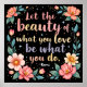 Inspirational Rumi Quote " Let the beauty of what you love be what you do" framed by beautiful and colorful floral elements, stars and sparkles of light.