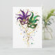 Laissez les bon temps rouler! Let the good times roll! This Mardi Gras masks greeting card says it all. Text can be changed. Gold is a color, not foil. Pattern is AI-generated by IveyCottage.