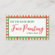 Let the Magic Begin! This custom Face Painting business card is designed to make a bold first impression with a fun and festive look that perfectly matches your summer event setup. The front features your business name—“Face Painting by [Your Name]”—on a clean white panel, framed by a cheerful Watermelon Red, Grass Green, and picnic-style chequered border, setting the tone for playful, professional service.