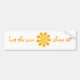 Painting of bright yellow and orange flower type energy burst, with the statement, "Let the sun shine in," printed on bumper stickers.