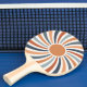 Let the sunshine in retro style illustration with colourful (orange, brown, blue, navy blue, beige) curvy sun rays on pastel grey background for summer lovers.