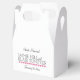 Modern typography and pink hearts are the root of our new contemporary gender-neutral wedding invitation suite. Featuring fonts that are sharp, angular and bold you'll find a complementary script to soften the design. Bold black fonts join soft pink hearts on a crisp white background making this a delightfully restrained bit of whimsy an invitation suite that is perfect not only year round but also for both indoor and outdoor events. You are viewing the companion paper take-out box that accompanies this wedding suite. It is white and included the name of both partners along with the wedding date. A line of pink hearts runs under the partner's names. This is a perfect box to carry home a slice of wedding cake. Our message says "sweet memories" however you may choose to change the message to suit your needs.
