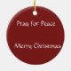 The ornament is adorned with rich, festive colours and gold touches, making it a timeless addition to any Christmas tree or holiday décor. With its traditional design and elegant craftsmanship, this ornament serves as a beautiful decoration and a reminder of the love, hope, and peace that Christmas represents. It comes ready to hang with a decorative ribbon, adding a classic touch to your holiday celebrations and the beautiful message on the back that says "Pray for Peace"
