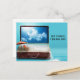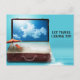 Fun Travel Postcard Featuring A Photo Of An Opened Suitcase With A Tropical Beach Chair Under An Umbrella On A Sandy Beach Inside And The Quote Let Travel Change You.