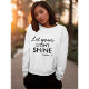 This radiant women's sweatshirt, inspired by the powerful Scripture Matthew 5:16. Emblazoned with the uplifting message, "Let your light shine," was made to inspire and uplift. As you wear this sweatshirt, allow it to be a beacon of hope, reflecting the love and goodness of God. Let your light shine brightly, illuminating lives and inspiring others to walk in faith.