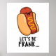 Let's Be Frank Funny Hot Dog Frankfurter Pun features a cute hot dog who love to be frank. Funny Pun gift for family and friends who love hot dogs and puns.