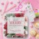 Christmas bridal shower invitation theme "Let's Be Merry Before She Gets Married" featuring elegant hand-painted red and green flowers with soft leafy accents, this design brings a romantic and feminine vibe perfect for Christmas gatherings, brunch showers, garden parties, and special pre-wedding celebrations. Customise the text to fit your event details and make it all yours.