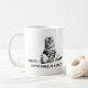A funny cat sits on a floor with its front paws crossed and his tail to the left. An impression of a bit tired pet. The day was hard and full of experiences. Let's call it a day. Elegant, unique coffee mug for anyone. Customisable design. You can change or delete the text. Do not forget to choose another style or colour of the mug. You can also transfer this design to another product of your choice, just use an option to the right of this description.