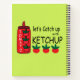 Lets Catch Up With Ketchup Notebook designed by Nisha Prabhu. Cute red tomatoes and ketchup illustration with funny typography. Get ready to add some flavour to your note-taking with this 'Let's Catch Up With Ketchup' notebook! Perfect for jotting down ideas, doodling, or keeping track of your thoughts, this playful notebook is a must-have for ketchup lovers and foodies alike. With a fun and colourful design that will make you smile every time you use it, this notebook is as practical as it is delightful. Treat yourself to this unique and charming notebook and spice up your stationery collection!