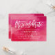 Stylish, trendy birthday party invitation with vibrant pink watercolor background, modern brush font, and custom text. Change the font style, add images, and change card shape for a more customised look.