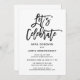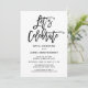 This is a typography brush hand lettering wedding invitation let's celebrate