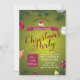 Invited your friends and family to your Christmas party with this beautiful invitation. Featuring Red Pearl font, Christmas ornaments, silver and gold streamers and pine branches.