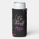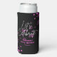 A modern, stylish and glamourous birthday seltzer can cooler. This design features a vibrant typography "Let's Celebrate" with pink gradient bokeh on a black background. Personalise and add your party details. Make your milestone birthday an extraordinary event!