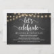 Let's celebrate, Wedding Elopement Announcement / Invitation card, in Rustic farm chalkboard, String Lights design. This is perfect for your wedding reception and post-wedding celebration party. Add your details in matching font / lettering.