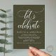 Mark the beginning of your forever with elegance using our contemporary modern olive green themed wedding elopement celebration invitation card, "Let's Celebrate", brunch, lunch, dinner, party and dancing. Perfect for couples extending their joyous occasion, this invitation exudes sophistication with a hint of playfulness, setting the stage for a memorable event. Adorned with a timeless modern script design theme, it adds a touch of refined charm to your festivities. Crafted by TeeshaDerrick, this invitation promises to beautifully capture your love story.