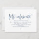 Let's Celebrate, modern minimalist design themed, wedding rehearsal dinner invitation card (in Navy Blue font and you can easily change the font colour). Planning a wedding Rehearsal Dinner celebration with the to-be Bride and to-be Groom, before their BIG day? Invite the guests with this perfect Wedding Rehearsal Dinner Invitation Card. Add your rehearsal dinner details in matching font / lettering.