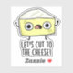 Let's Cut To The Cheese Funny Food Pun features a cute wedge of cheese saying "Let's cut to the chase" . Perfect Puns gift for family and friends who love cute cheese puns.