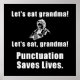 Let�s eat, grandma! Thank goodness for commas. The use of punctuation can save lives! Check out this funny custom design on tees, shirts, mugs, pyjamas, gifts and other apparel.