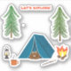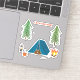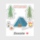 Fun camping stickers with a bear and his Racoon eye masking sleeping in a pitched tent. You can customise the words with a click of a button.