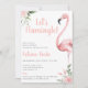 Let's Flamingle! Watercolor pink flamingo, tropical foliage and blush pink flowers, bridal shower invitation.