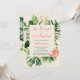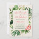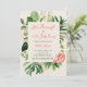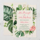 The perfect invitation for a fun, elegant "50 & Fabulous" birthday party, this "Let's Flamingle" design features a beautiful gold and green tropical watercolor motif, embellished with a beautiful flamingo. With pink and green text in both hand lettered script and modern sans serif typography, the back of the card features a complimentary tropical watercolor greenery motif. Copyright Elegant Invites, all rights reserved.