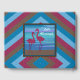 Guest book with a tiled striped pattern that matches the two flamingos at dusk that is on the back of the book. On the front is a photo of the happy couple to be replaced by the real couple. Use the crop and sizing tools to make the photo fit within the space. Replace the names and the date for your own when you personalise it. Matching products are available or transfer this design to other items.