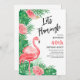 Let your special day be an unforgettable event with this tropical flamingo-themed birthday party invitation! From hot-pink decorations to fun poolside activities, these fun-filled festivities will be sure to leave your guests with a lasting impression. Your family and guests will be delighted when they receive this cheerful invitation that features a friendly flamingo and the words "Let's Flamingle!".
