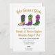 This invite features three sparkly purple, gold and green cowgirl boots with the caption "Let's Geaux Girls", perfect for a New Orleans girls trip or Mardi Gras themed bachelorette party.