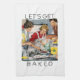 Funny pot pun kitchen towel with a vintage or retro baking scene titled LET'S GET BAKED!