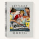 Funny pot pun recipe notebook for the stoner with a vintage baking scene titled LET'S GET BAKED with a changeable grey background.