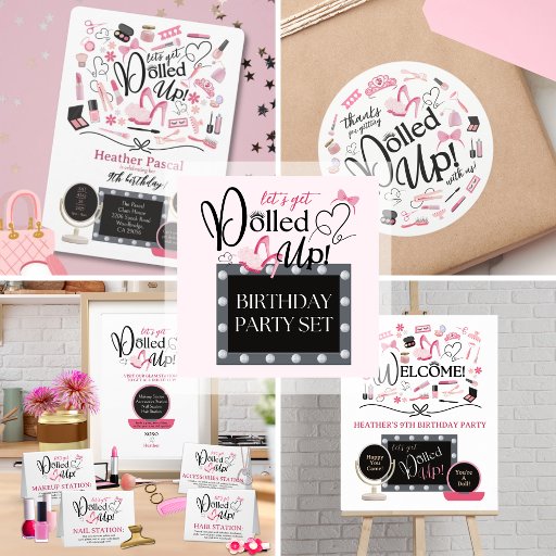 Host an amazing glam party with this delightful "Let’s Get Dolled Up" birthday invitation! If your child adores pink, makeup, nails, and everything glamorous, this invitation will be a hit. It's perfect for celebrating birthdays, bridal showers, or a fun girl’s night out.