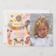 This"let's get groovy" girl's birthday photo invitation features a rainbow colour background with a smiling flower, mirror ball, hand, inflatable flamingo tube, tropical cocktail, popsicle, sunglasses, peace sign, beach ball, rainbow and palm trees. The reverse side features a rainbow colour background. Personalise it for your needs. You can find matching products at my store.