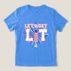 LET'S GET LIT Patriotic Firecracker Fireworks Red White Blue Stars 4th of July Holiday Typography Script Tshirt features the text "Let's get lit" in modern typography script accented with a patriotic firecracker in stars and stripes with fireworks. Perfect as gifts for family and friends for 4th of July celebrations, birthday, Christmas, holidays and more. Created by Evco Holidays www.zazzle.com/store/evcoholidays