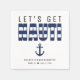 Blue and white striped "let's get nauti" napkins for a bachelor / bachelorette party. Personalise it with your own text.