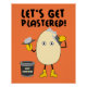 Let's get plastered text with an egghead plastering itself with joint compound is a humourous design for party hardy college students and construction workers alike.