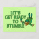 This funny St. Patrick's day design features a man dressed in green who has fallen down, but still managed to hold onto his drink, and the caption "Let's Get Ready to Stumble."