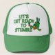 This funny St. Patrick's day design features a man dressed in green who has fallen down, but still managed to hold onto his drink, and the caption "Let's Get Ready to Stumble."