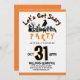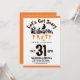 Cool modern and creative halloween illustration featuring black crow. Text is all customisable including-Let's get Scary. Black white with orange stripes accents.