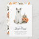 Hosting an adults only Halloween bash? Invite friends with these charming and funny invitations featuring a dog wearing a ghost costume, flanked by watercolor jack-o-lantern pumpkins. "Let's get sheet-faced" appears beneath, along with your Halloween party details.