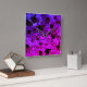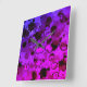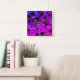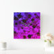 This square wall clock is covered in all Kinds of stains, splatter and droplets the coloring is all kinds of hues of purple. Which makes this clock wild and bright.