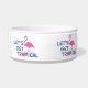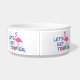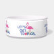 This fun and cute Let's get Tropical with pink flamingos graphic on this doggie bowl is perfect for your pet. Design by Inge Lewis. Great gifts for your family, friends or visitors. Find more matching items at the ingeinc.com boutique / store.