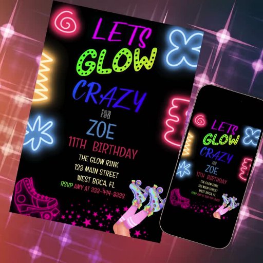 Let's Glow Crazy , Neon Birthday Invitation