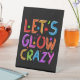 Lets Glow Crazy Party Retro Neon 80s Rave Colour Pedestal Sign